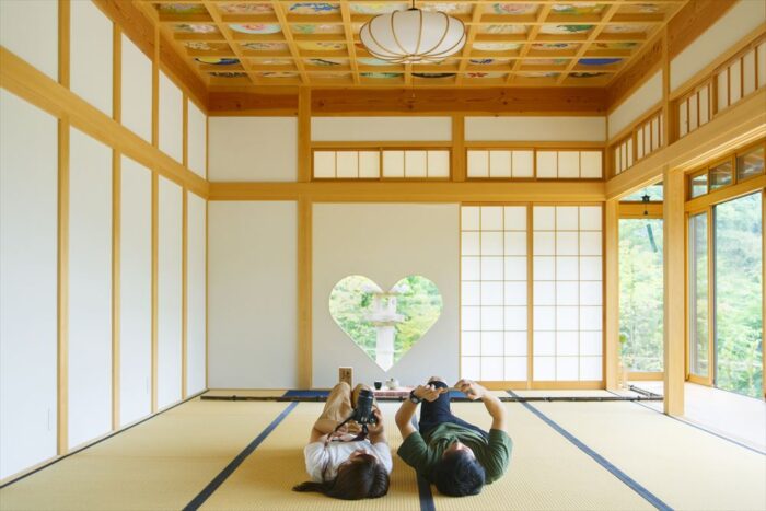 宇治茶の名産地・宇治田原町にある「正寿院(しょうじゅいん)」といえば、猪目窓(ハート形の窓)&花天井をひと目見ようと、良縁祈願の方や女子たちがこぞって訪れる寺院です。