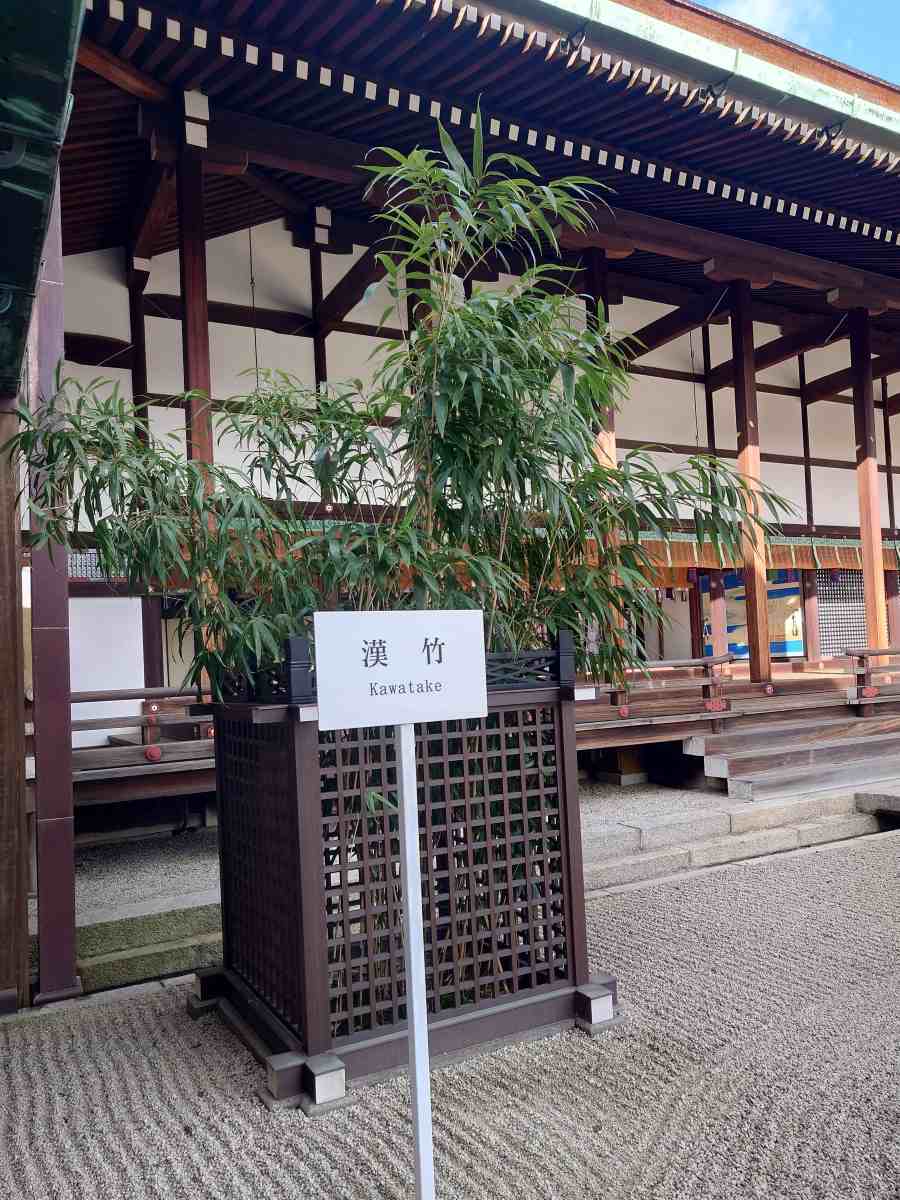 清涼殿の東庭も白砂になっていて、ここで儀式や行事が行われました。そして御殿寄り南側に漢竹,北側の少し離れた場所に呉竹が植えられています。儀式の時に整列したり時に目印とすることがあったのだとか。