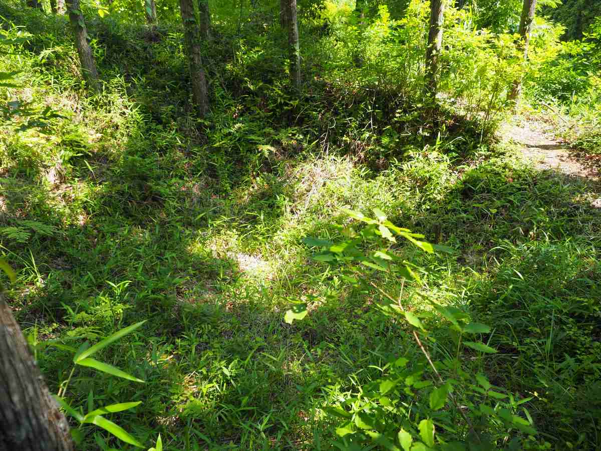 これは看板がないと、すぐに氷室跡とは分からないような窪地です。ここで氷が保存されていたのですね。今は陽が当たっていて、ひんやり感はありませんでしたが、当時はもっと木がうっそうとしていたのでしょうか。