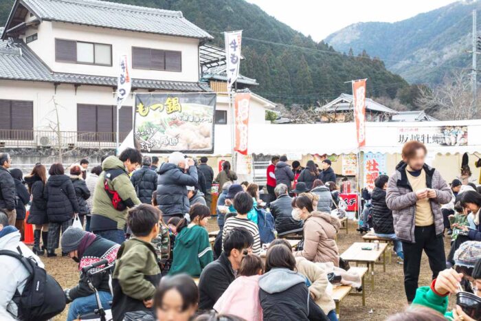 「まずはご当地鍋の中でも地元の鍋を食べたいよね~」なんて思いながら会場に着いてびっくり。京都府で一番小さな町といわれる笠置町に驚くほど大勢の人が集まっているではありませんか!