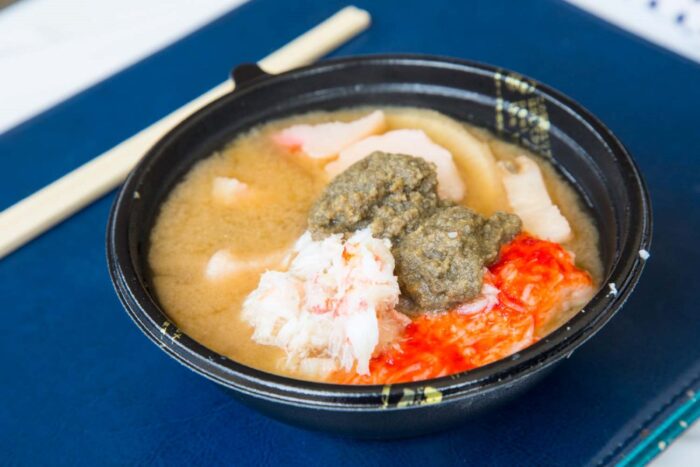 こちらは「静岡おでん鍋」。牛すじ肉の出汁からとった濃い汁に、卵や大根と共に、イワシとサバから作った静岡名物の黒はんぺんが入っています。この黒はんぺんからも美味しい出汁が出ているんですって。上にかけられた、だし粉と青のりの風味が豊か。これは日本酒が飲みたくなります。