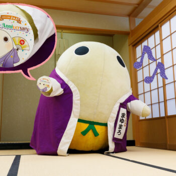 2009年10月に「第26回 国民文化祭・京都2011」のPRキャンペーン隊長として誕生したまゆまろ。丹後ちりめんや西陣織など、京都の着物文化に欠かせない原料の「繭」をモチーフに、紡がれた糸がこれから新しい文化を紡いでいくという思いが込められています。養蚕が日本に伝わったのはおおよそ2000年前の弥生時代であることから、まゆまろの推定年齢は2000歳とされています。