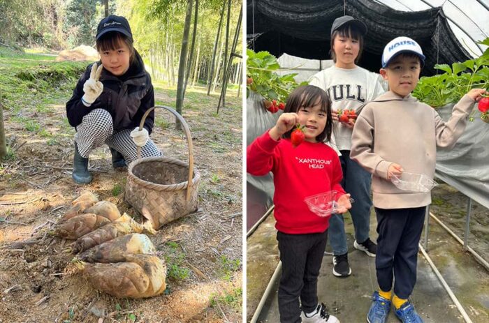 3月中旬から5月下旬にかけて体験できるのは、「竹の子堀り」と「いちご狩り」の2種類のコース。初心者には難しそうな竹の子堀りですが、スタッフの方が竹の子の見つけ方や、掘り方のコツを教えてくれるので、気軽に挑戦できますよ。さらに500グラムの竹の子がお土産としていただけます。
