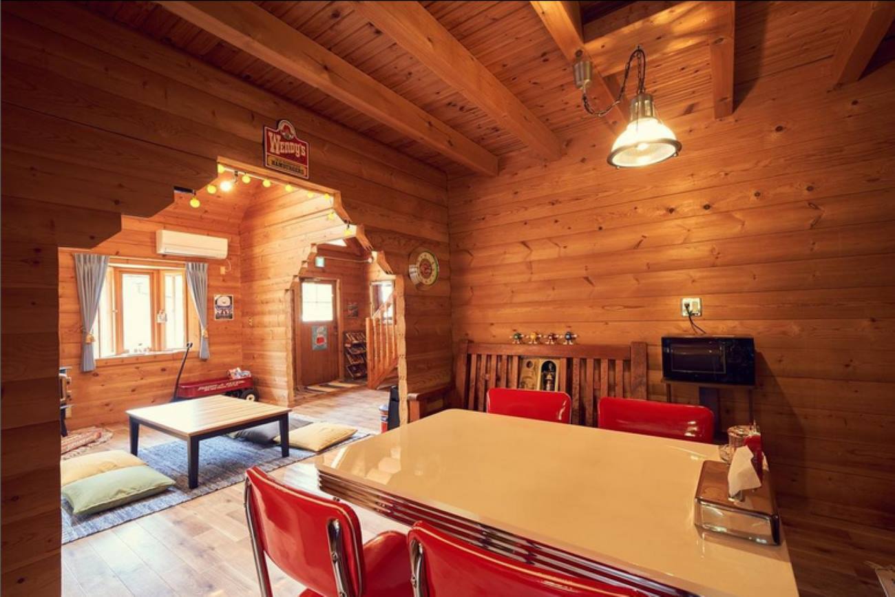 部屋のインテリアはレトロポップなアメリカンヴィンテージ。古い映画のパンフレットやレコードなどが置かれ(聴くことも可能)、その素敵さにテンションがあがります。また室内にはワンちゃんルームもあり、愛犬と一緒に宿泊できるんですよ。